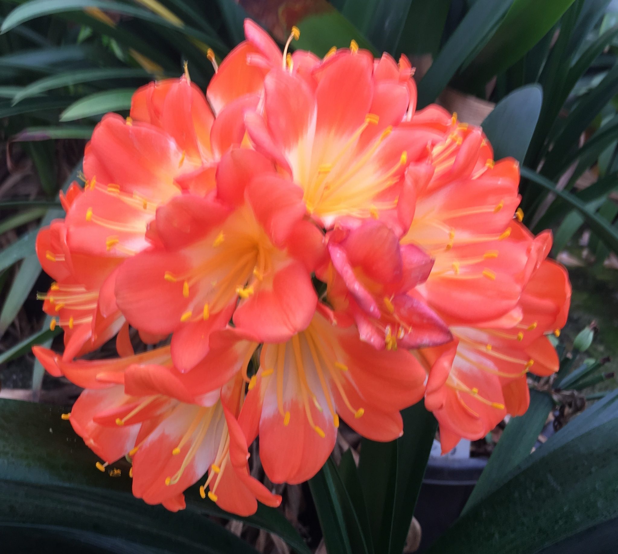 SH147 Possible Clivia caulescens x Clivia miniata, two tone tangerine yellow centered Multi Petal