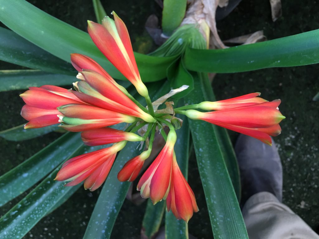 SH7 Nick’s ‘Devil’s Fingers’ Clivia Interspecific with dark green tips and dark orange to near red sepals