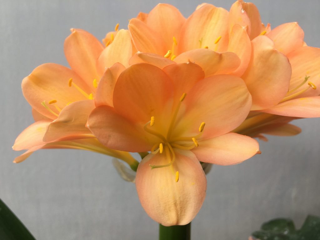 SH Very light Peach Clivia miniata with open flower and yellow throat