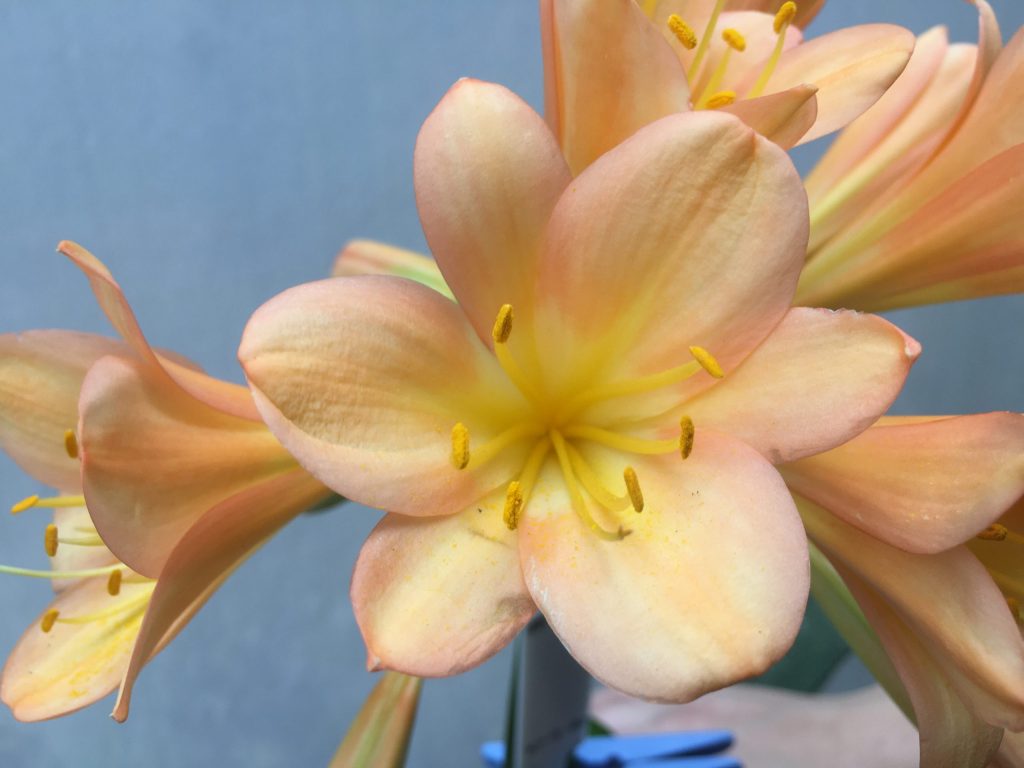 SH483 Mid Peach Clivia miniata with overlapping petals and pink blush