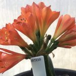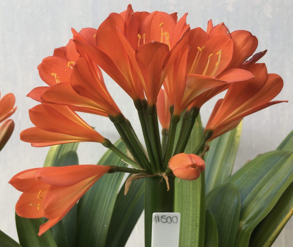 SH500 Variegated Belgium Hybrid Clivia miniata with dark orange tones and yellow throat (1 large offset attached)