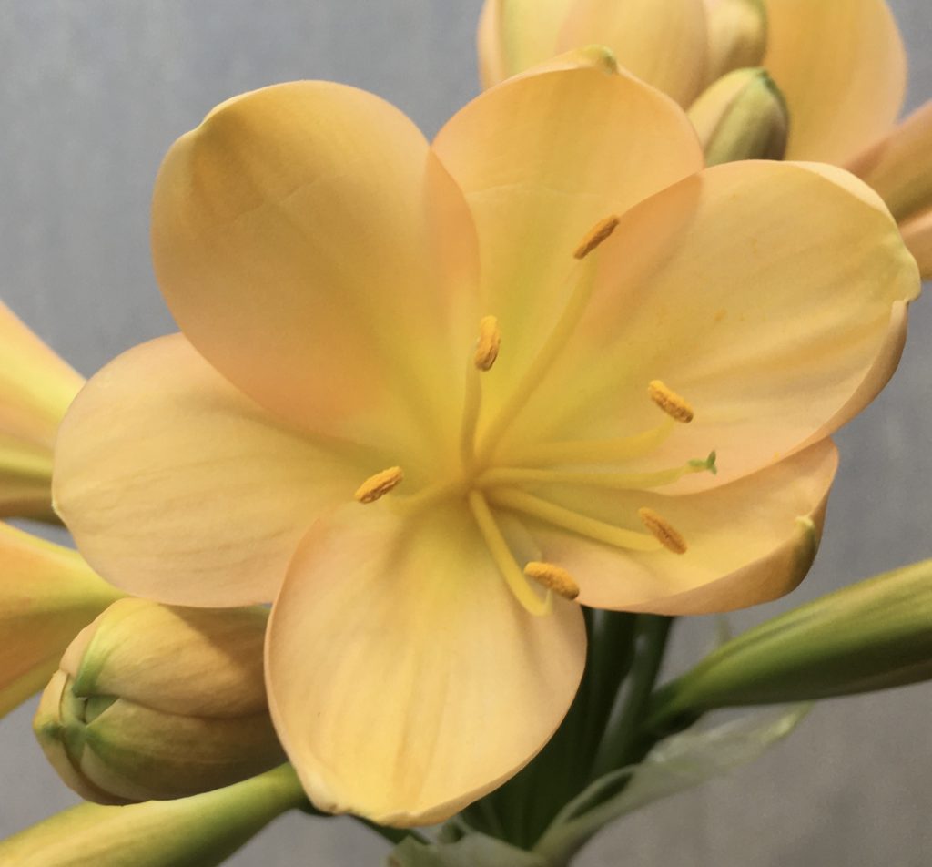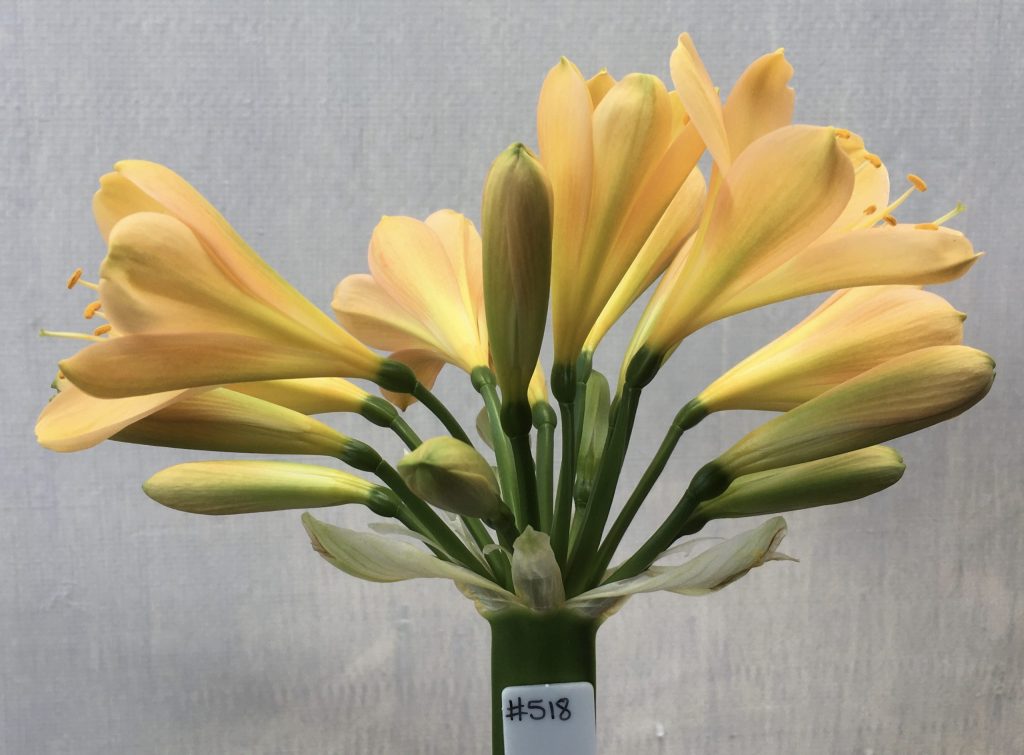SH519 light to mid peach Clivia miniata with light pink blush and green th...