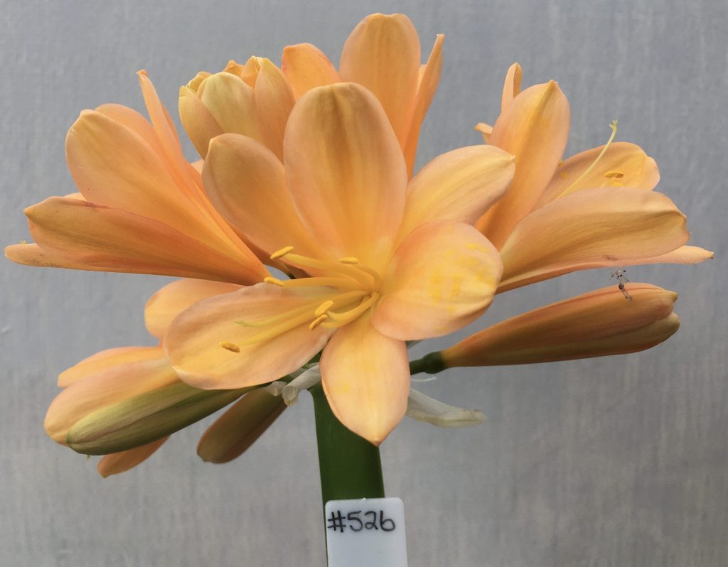 SH527 Mid peach Clivia miniata with pink edges to petals and strong yellow...