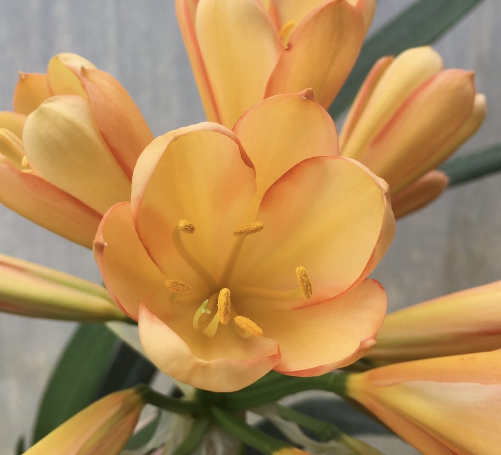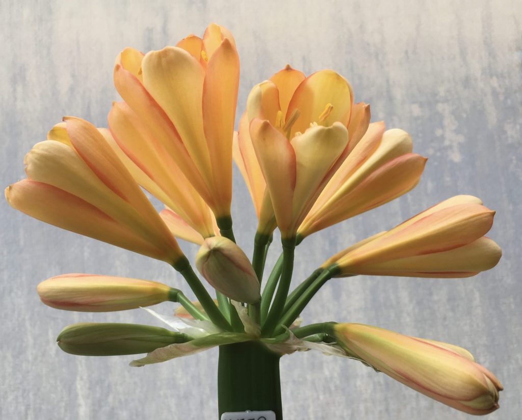 SH560 Cameron’s Tipperary peach Clivia miniata with broad petals, subtle...
