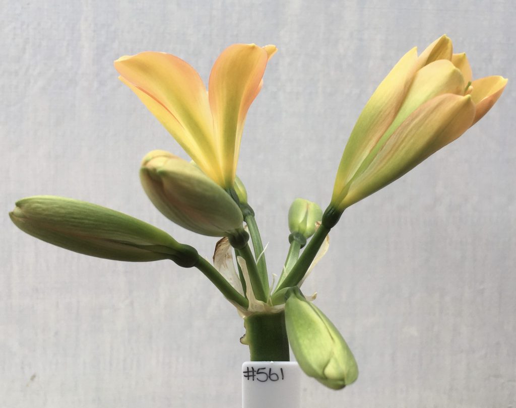 SH562 Light peach Clivia miniata with strong yellow throat and light pink ...