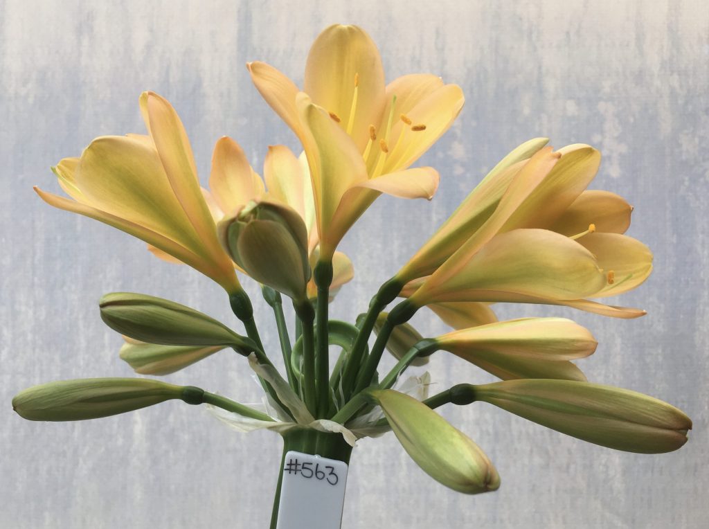 SH563 Mid peach Clivia miniata with light green chloroplasts to petals and pink tinge