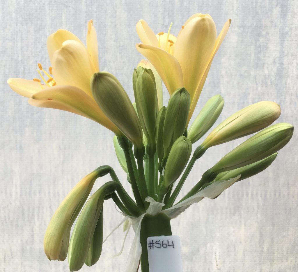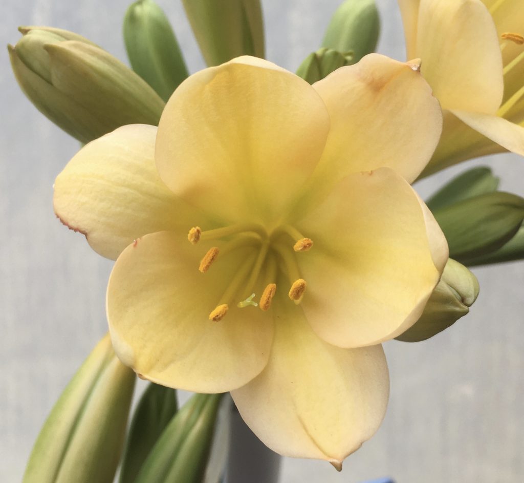 SH564 Light peach Clivia miniata with feint green throat broad petal and yellow tones