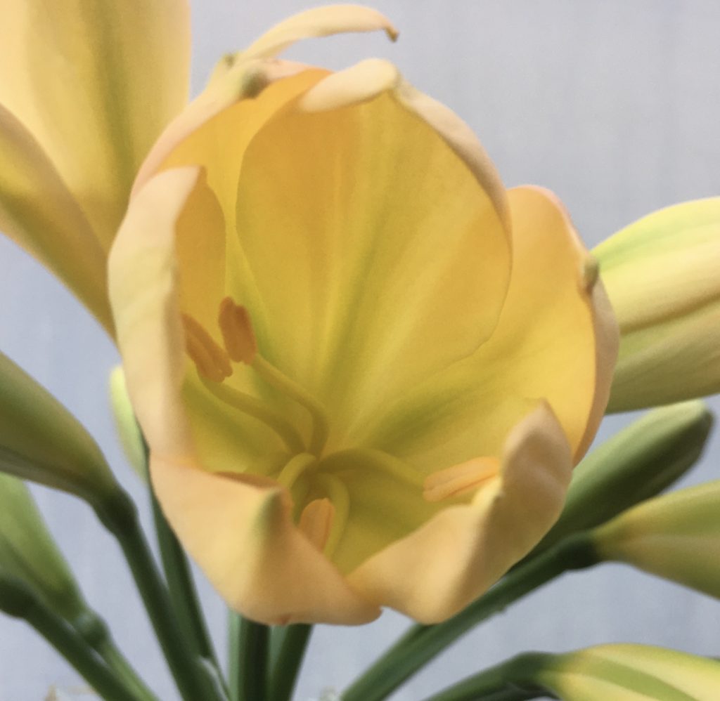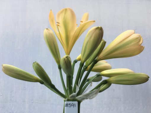 SH591 Light peach Clivia miniata with light green throat and strongly evident chloroplasts on new buds
