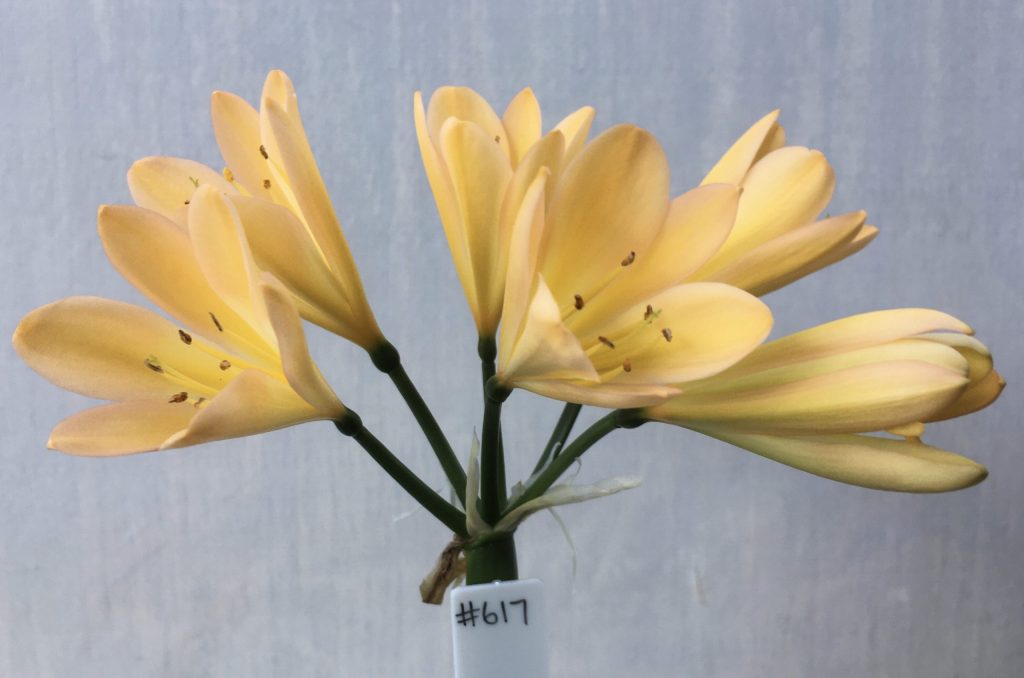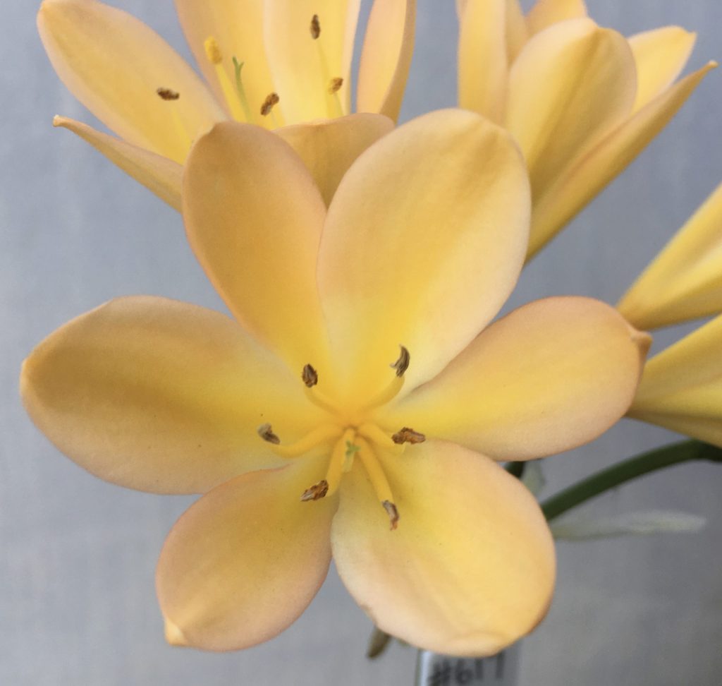 SH617 Mid peach Clivia miniata with yellow throat and blush