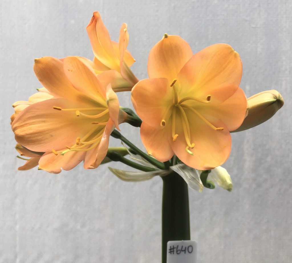 SH640 Mid peach/pink Clivia miniata with green throat and broad overlapping petals