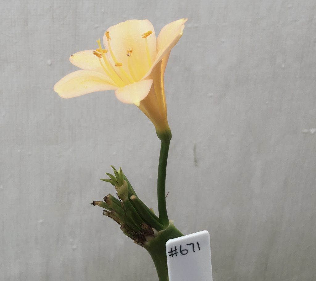 SH671 Mid peach Clivia miniata with slight pink tones and interesting stamen & stigma
