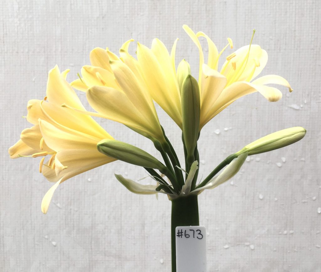 SH673 Very pale peach Clivia miniata with yellow tones and light green throat