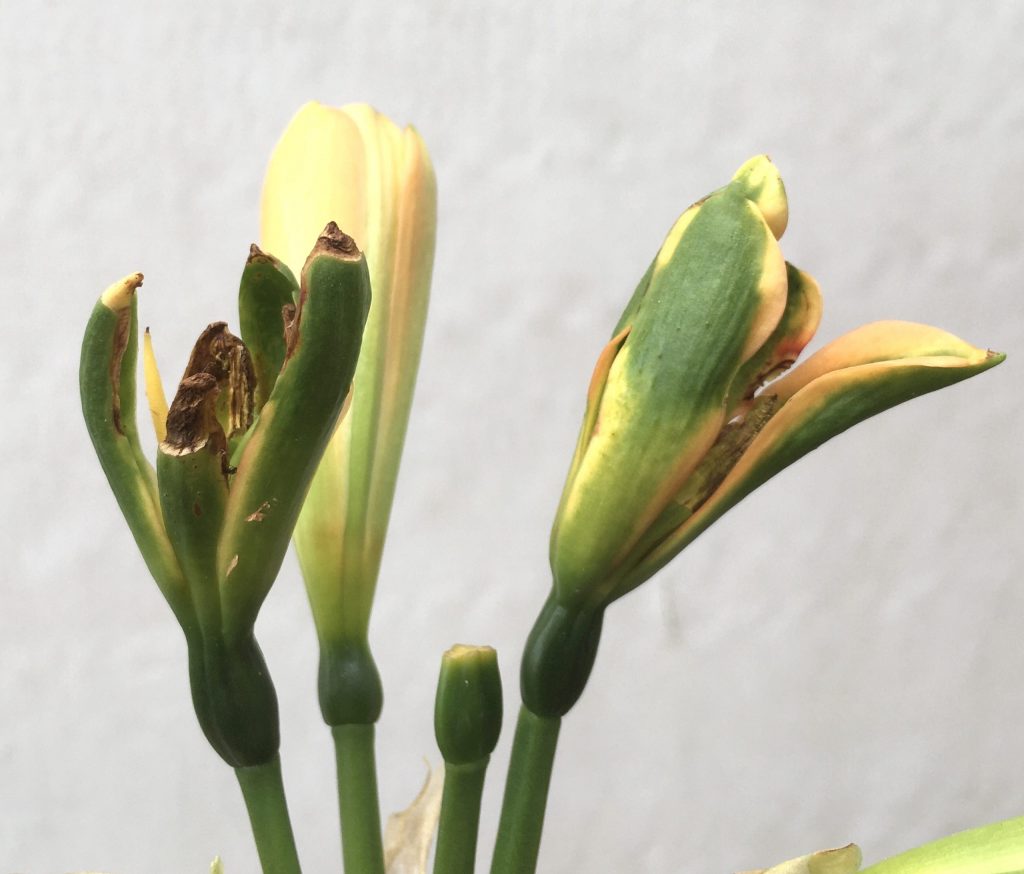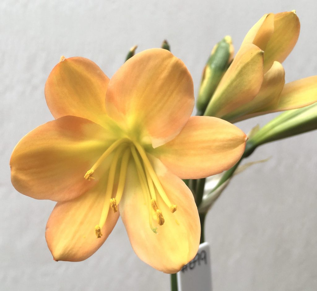 SH699 Mid peach Clivia miniata with light green throat but an excess of dark green chloroplasts to unopened buds