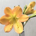 SH700 Mid peach Clivia miniata with light green throat and broad tepals