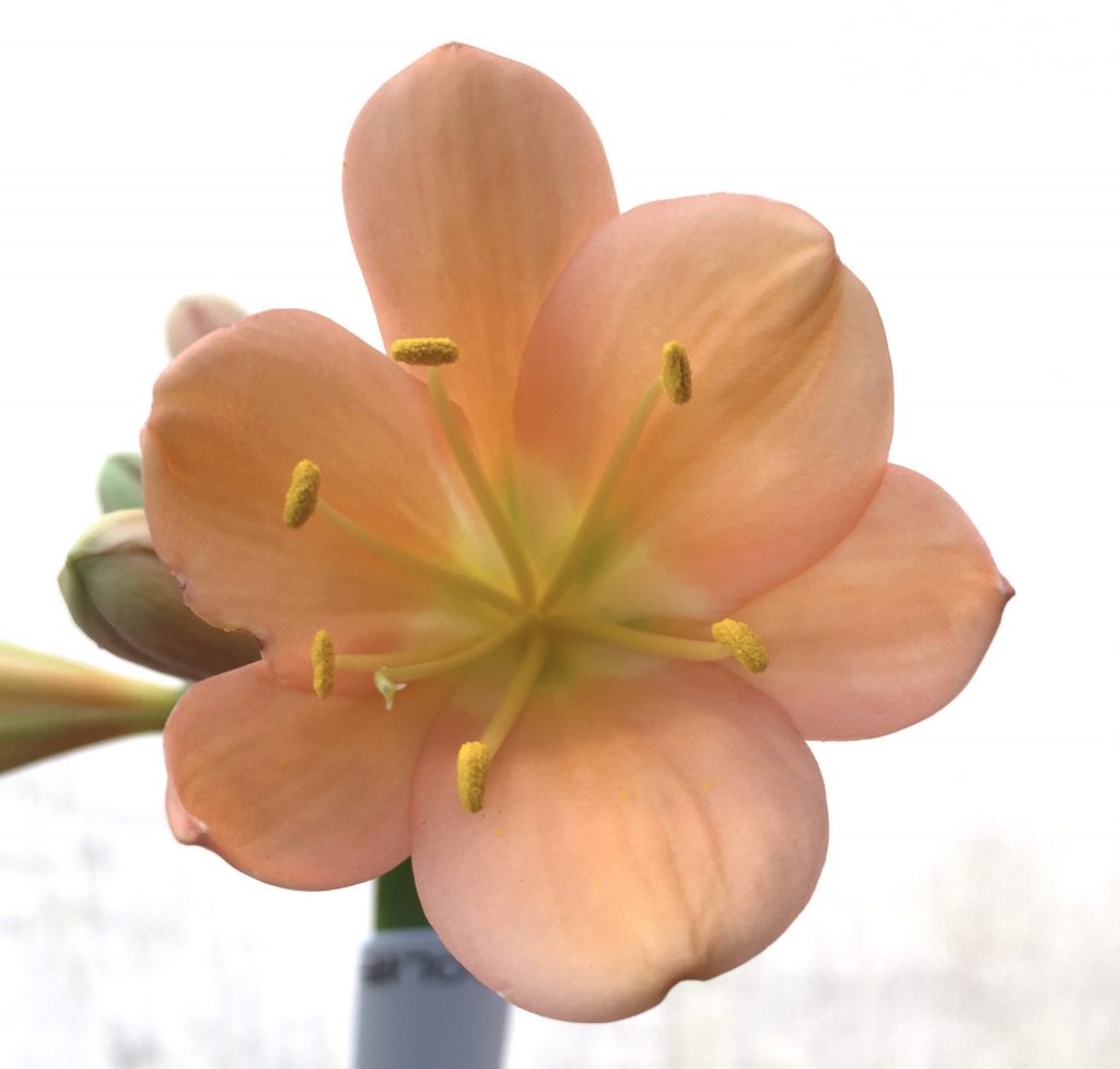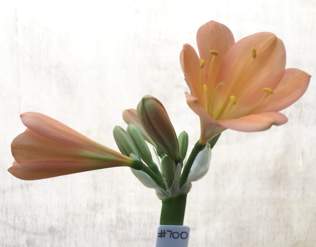 SH700 Mid peach Clivia miniata with light green throat and broad tepals