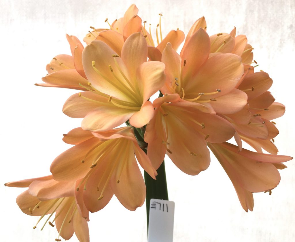 SH711 Cameron’s Tipperary mid to dark peach Clivia miniata with light green throat (9 medium sized offsets attached)