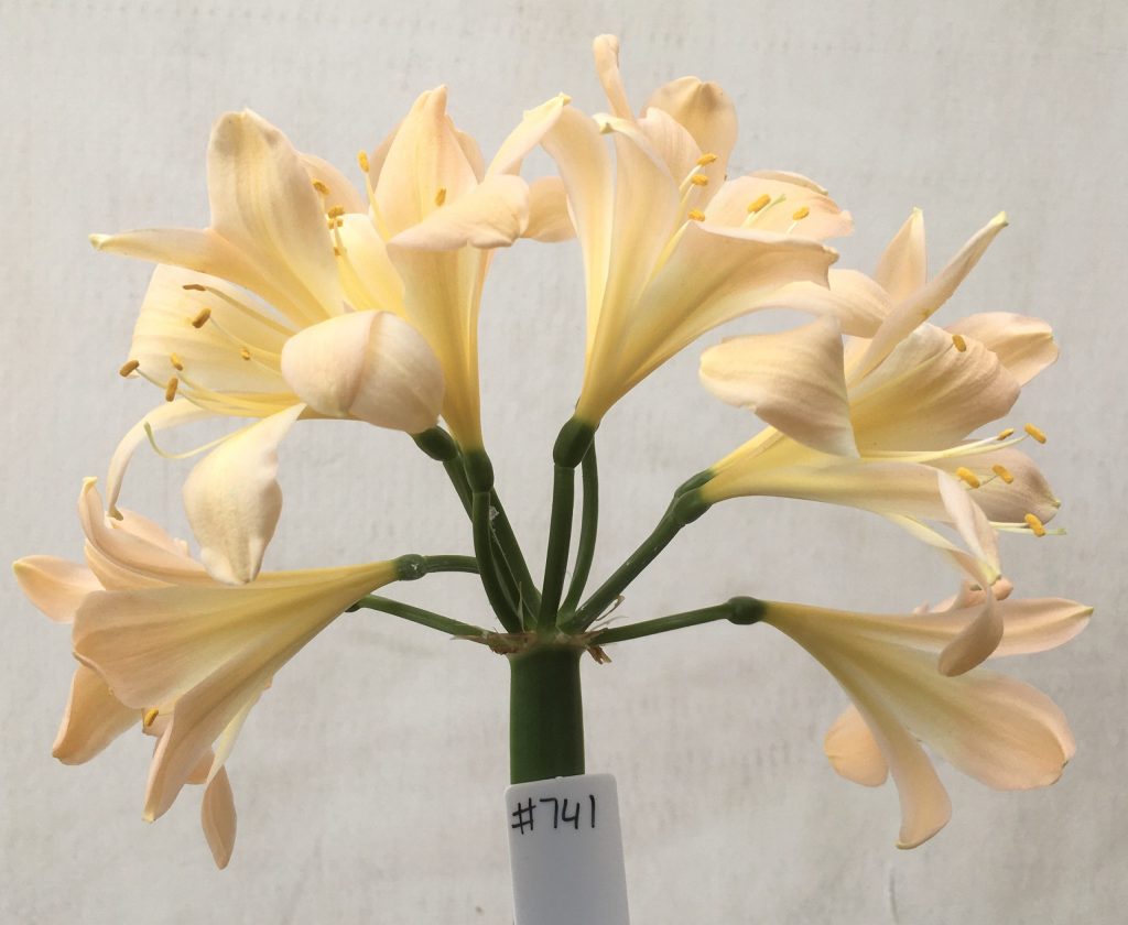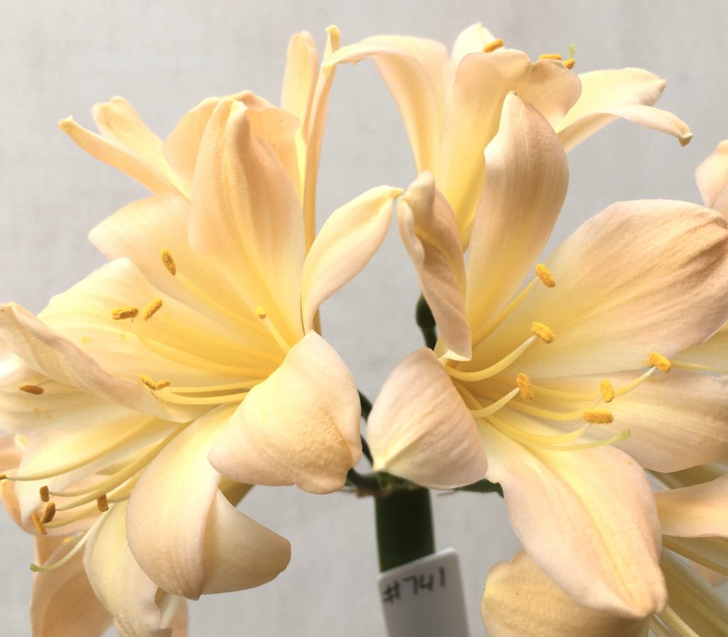 SH741 Light peachy pink Clivia miniata with some recurve to sepals