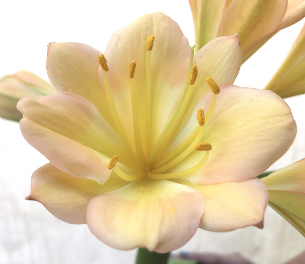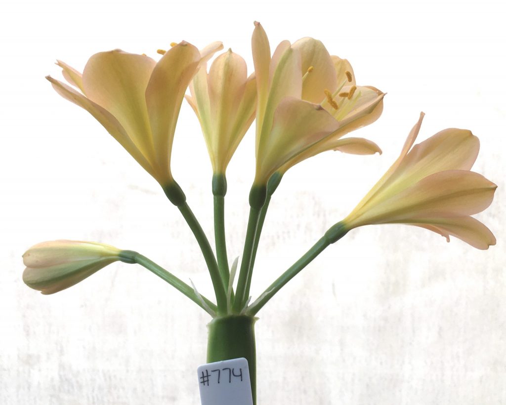 SH774 Light peach Clivia miniata with strong pink tones and showing one Multi-Petal flower
