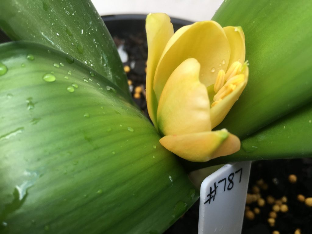 SH788 Clivia Interspecific with dark orange exterior and cream throat
