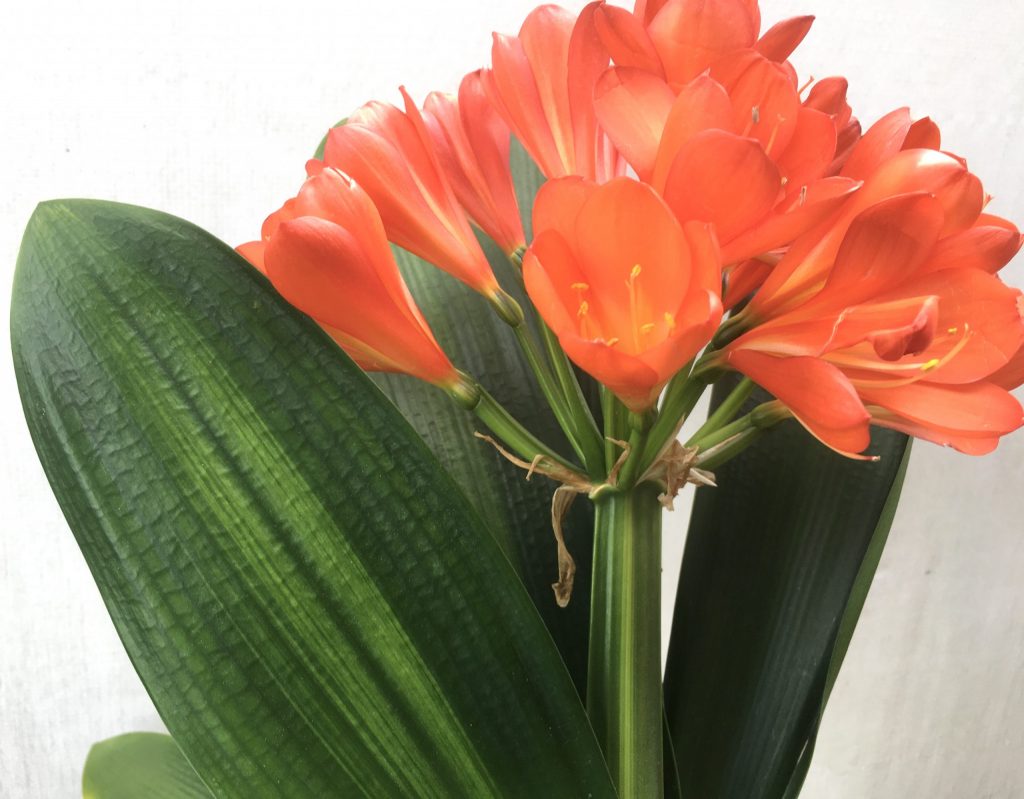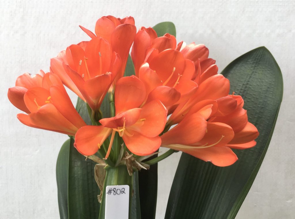 SH803 Anshan Daruma orange Clivia miniata with slight variegation and leaves...