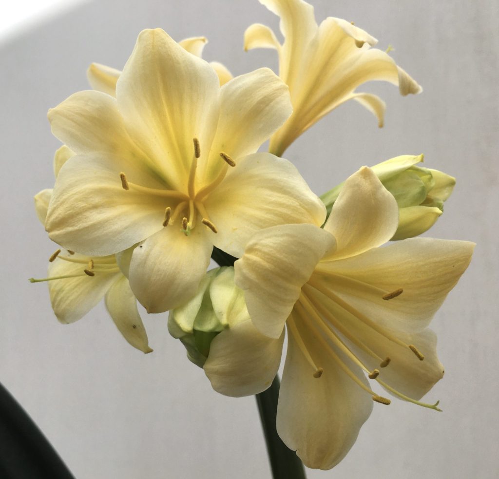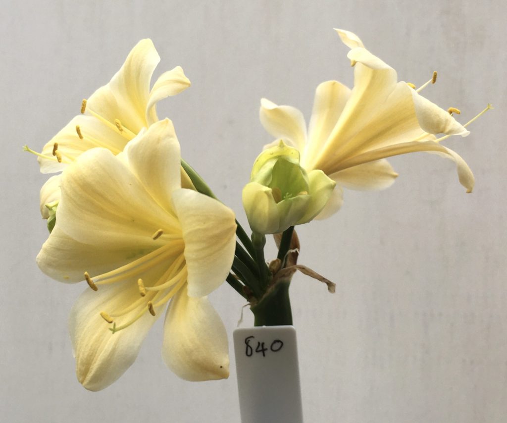 SH840 Cream Clivia miniata with recurve sepals and chloroplasts