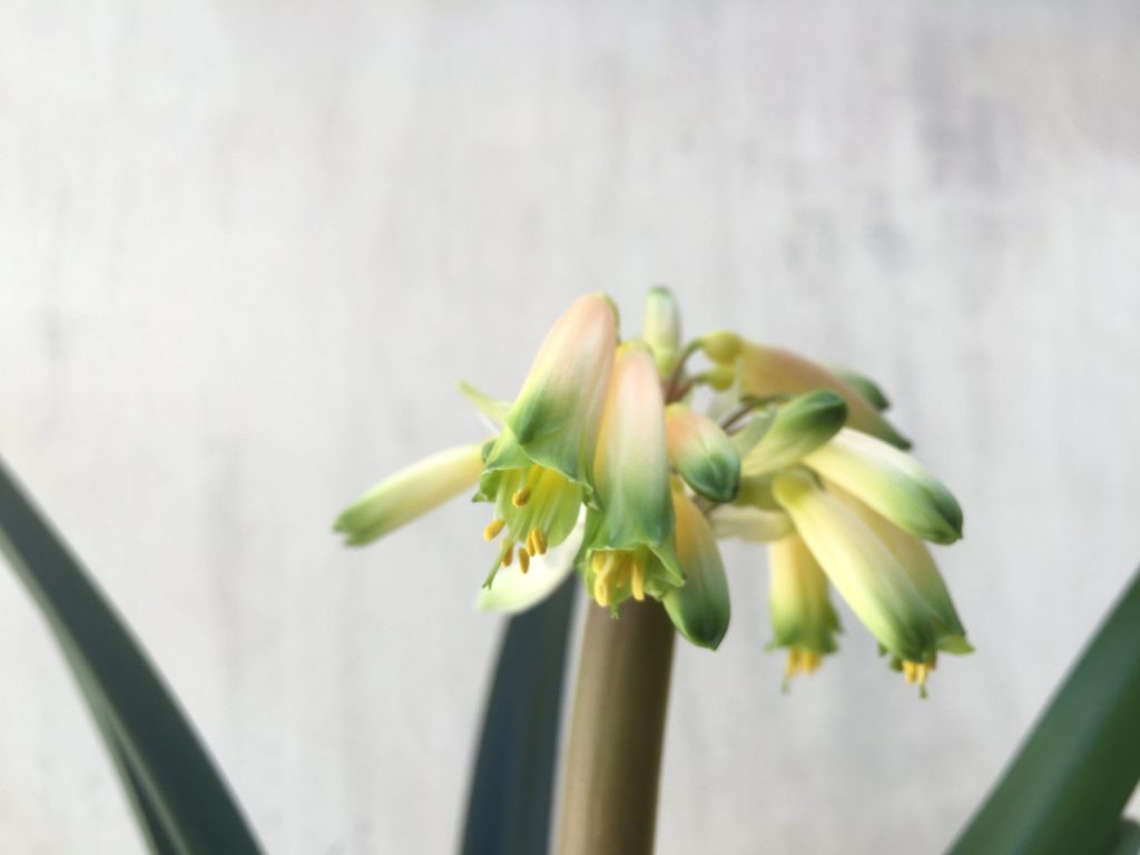SH849 Clivia gardenii with pale yellow/near white sepals and dark green tips