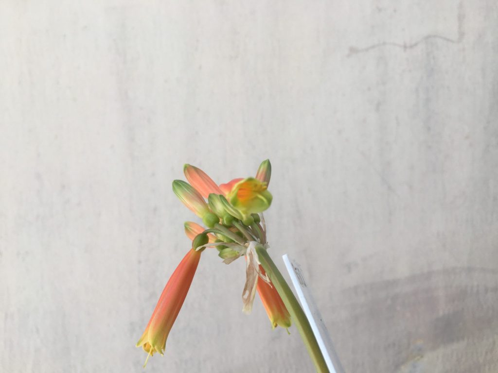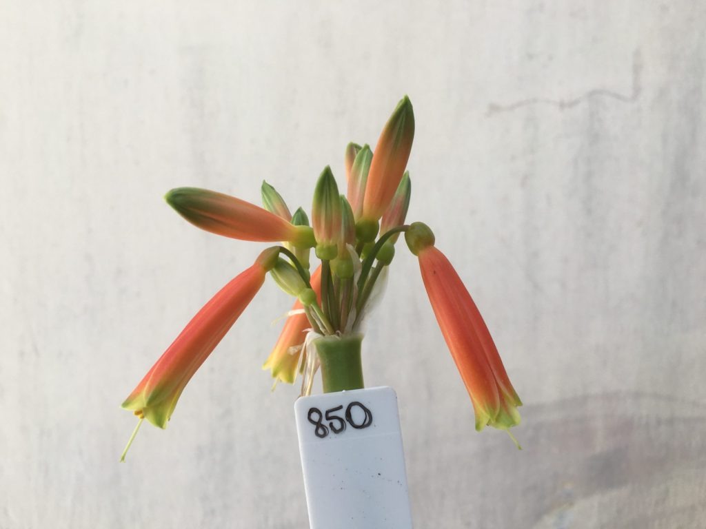 SH850 Interspecific Clivia with long tubular dark orange flowers and green tips