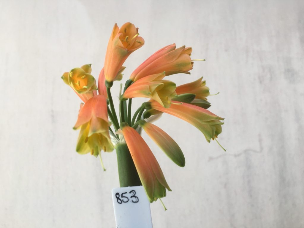 SH854 Clivia Interspecific having numerous cream sepals which fade to light...