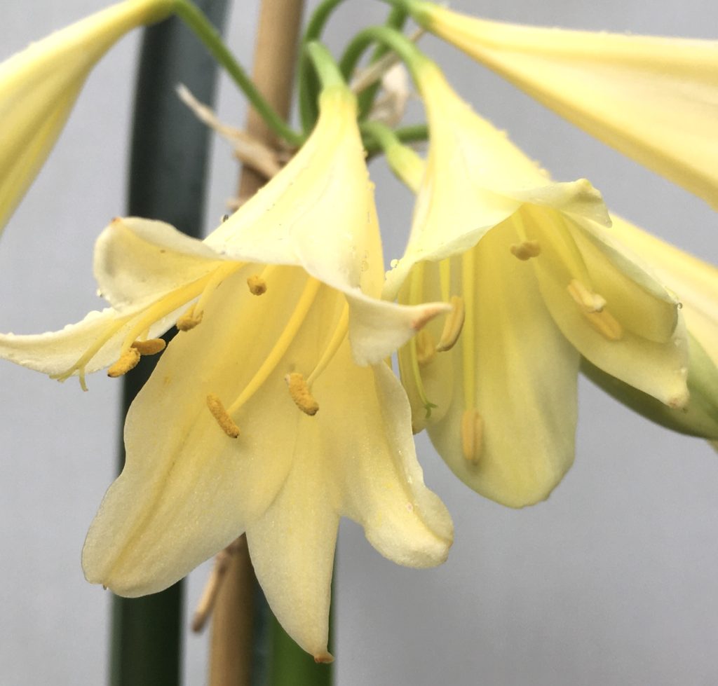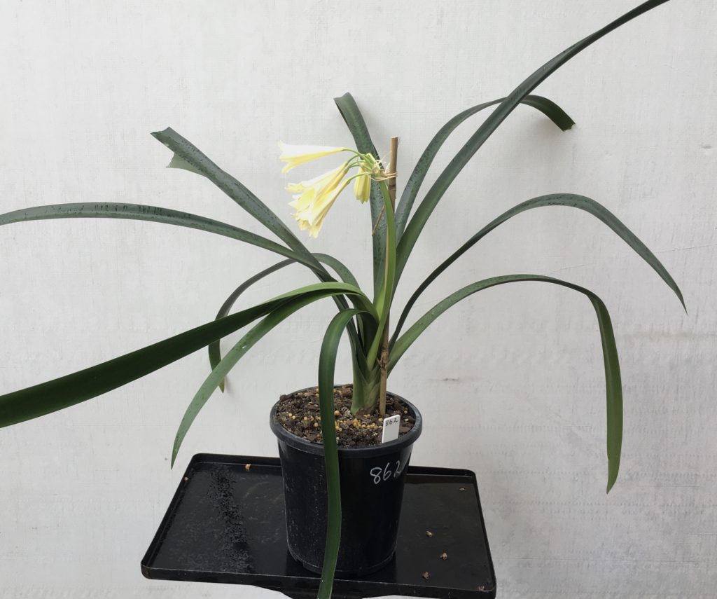 SH862 Yellow interspecific with tubular flowers and feint pale mid line to leaves
