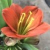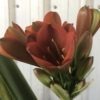 SH890 Very dark orange/bronze/red Clivia miniata Belgium Hybrid with strong purple hues of anthocyanins in unopened buds