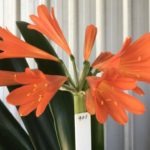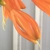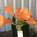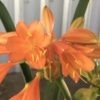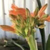SH902 Orange Clivia interspecific with crinkled green/orange buds that open down the flower before the tip. Solid orange throat